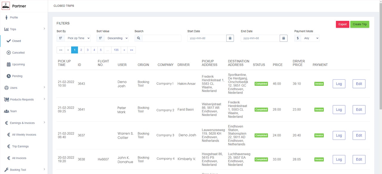 Partners can accept any number of trips conducted by themselves or assign them to other drivers in multiple ways; all managed in a simplified manner.